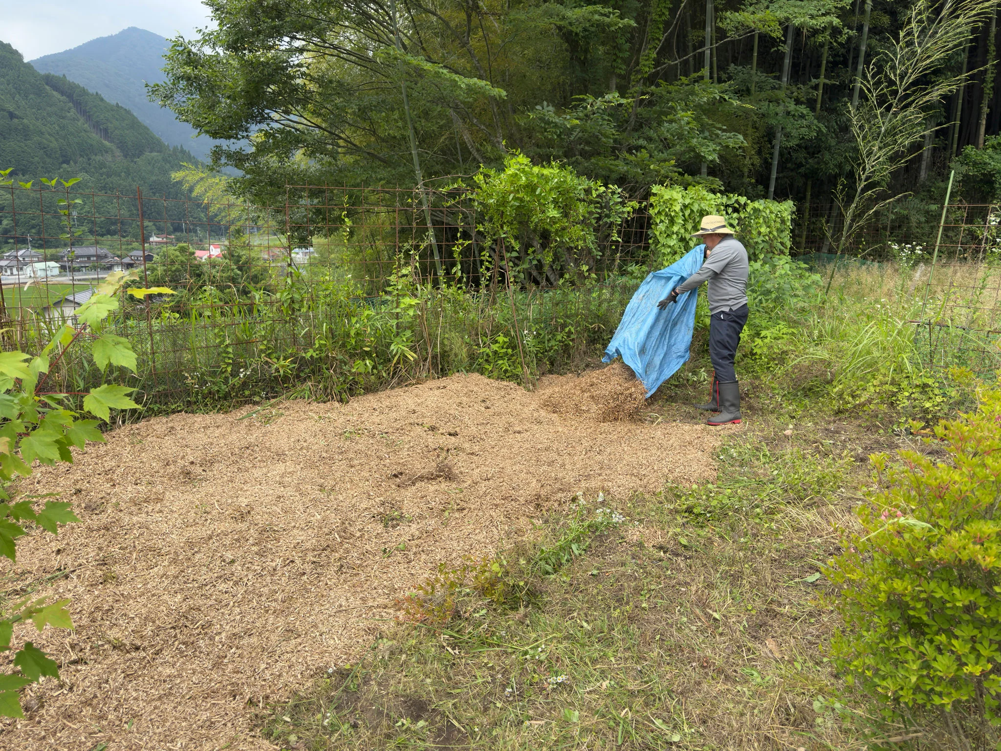 茅場の保全と資源循環のため、毎年実施しており、今年で7年目になります。ちくさ高原でスタッフ・参加者がかやぶき職人から指導を受けてススキの刈り取りや束ねる作業に取り組みました。刈り取った茅は古民家の軒下で茅干ししました。