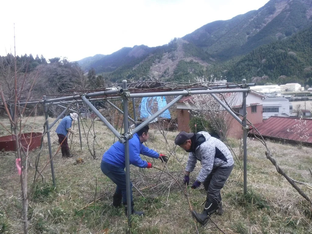 果樹園の管理(ブルーベリーやキウイフルーツの剪定)、モミジの施肥を実施しました。