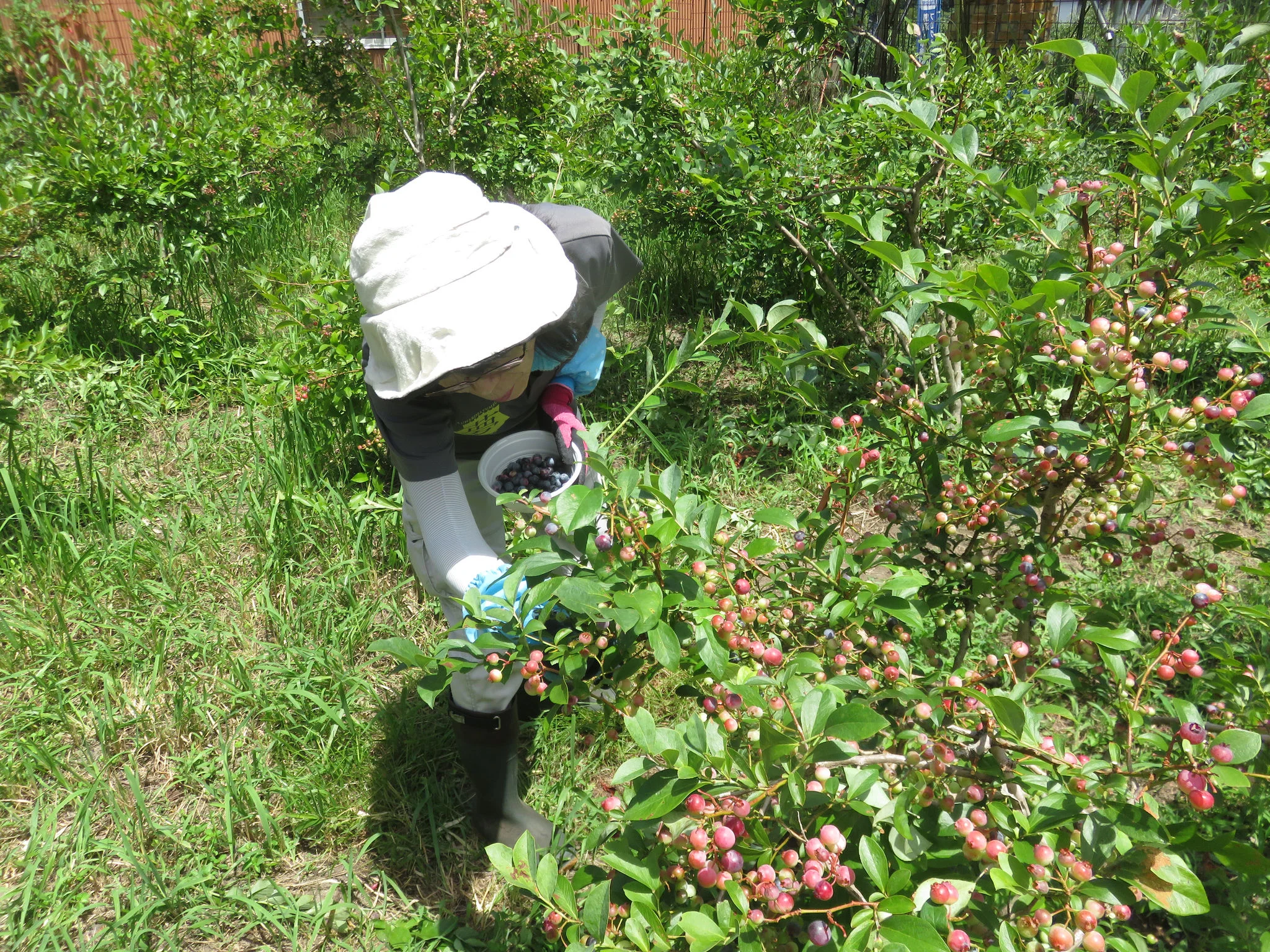 また、果樹園で育てているブルーベリーの収穫作業をしました。