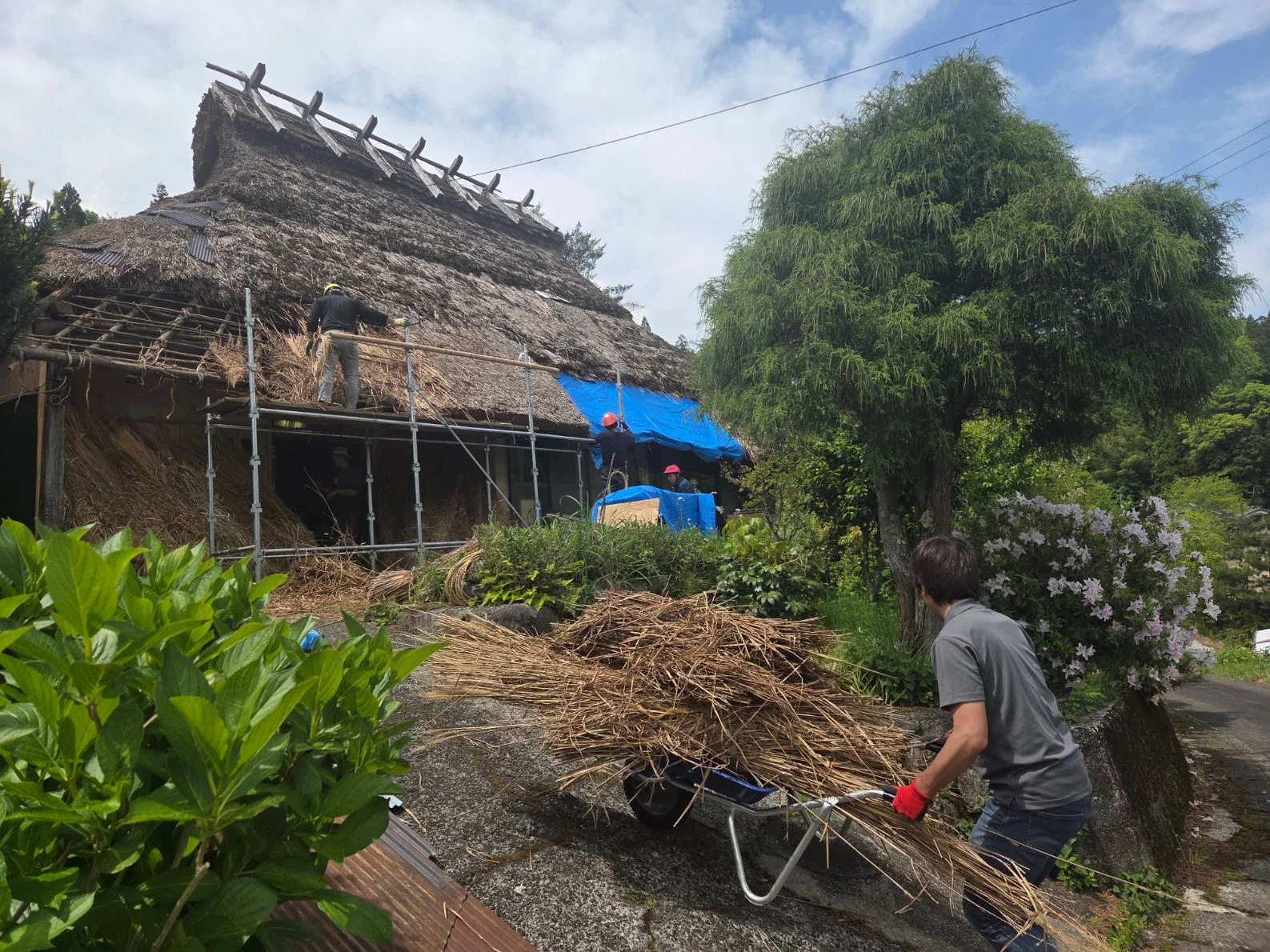 今年で7年目になる、かや刈り体験ワークショップでは、かやぶき職人の指導を受けてススキを刈り取り、古民家の軒下で干しました。年明けには古民家の解体や、屋根の古いかやの撤去などもワークショップとして行い、多くの市民が参加しました。