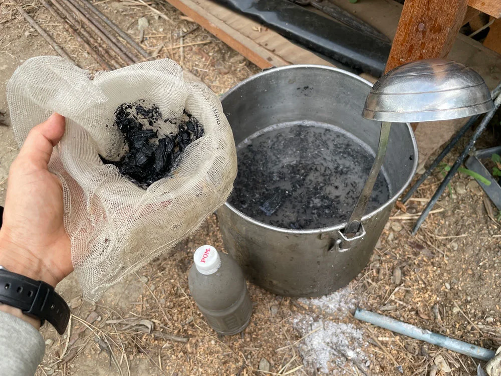 竹炭でつくったアルカリ水は、汚れた衣服についた皮脂と化学反応(鹸化)を起こして、石鹸がわりになります。