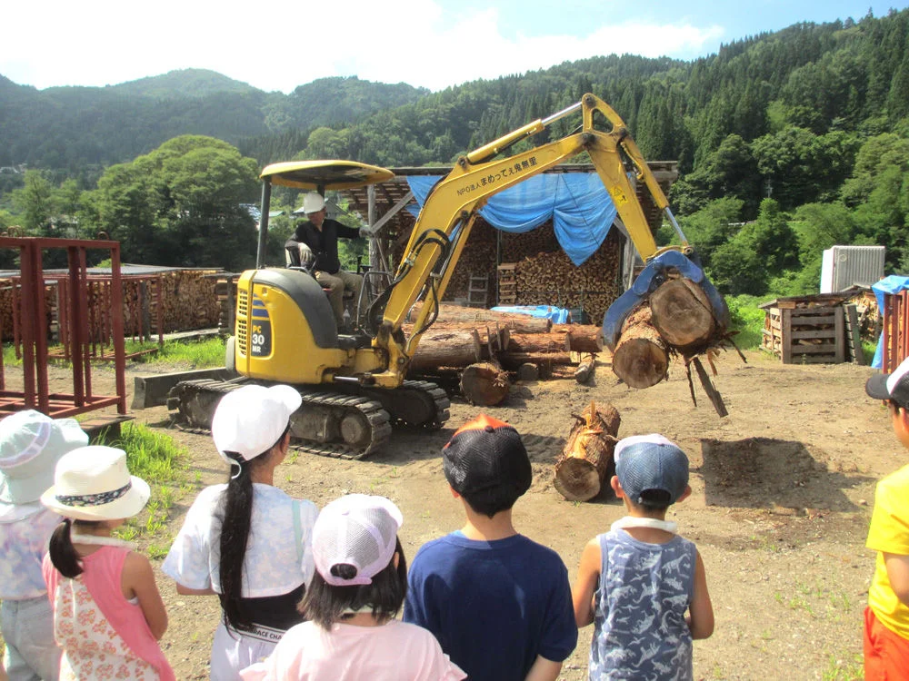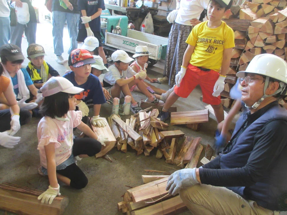 薪ステーションでは、山の木がどのような工程で薪になるのかを見学。