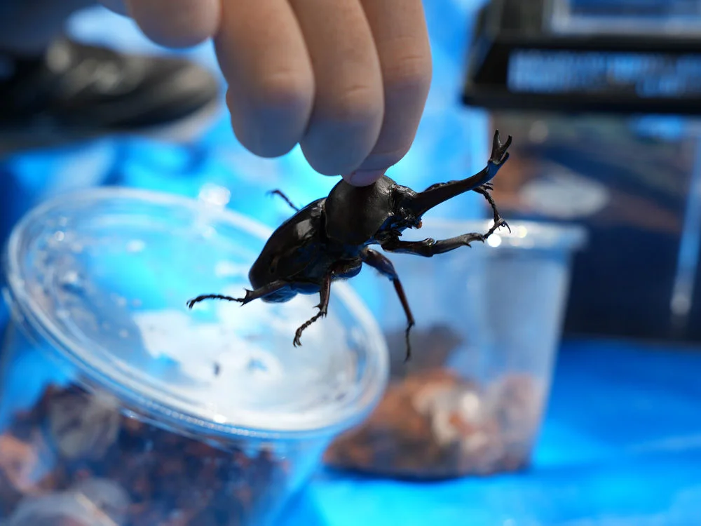 森のエコカフェづくりの一環として行っている、茅葺屋根の葺き替えワークショップで屋根から降ろした古茅のなかで育ったカブトムシの飼育講座を実施しました。