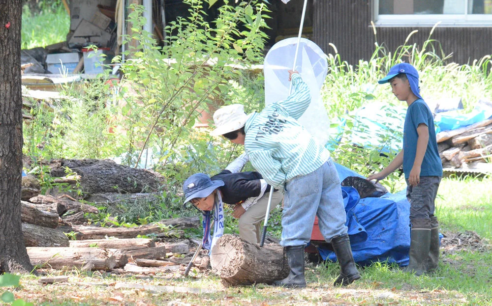 2日目の最後には、裏山に出掛けて昆虫採集に挑戦。