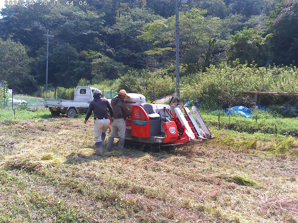 昨年はイノシシによる襲撃を受け、ほとんど収穫できず残念でしたが、今年はエコ基金を活用して新たな電気柵を設置したことにより刈り取りを行うことができました。