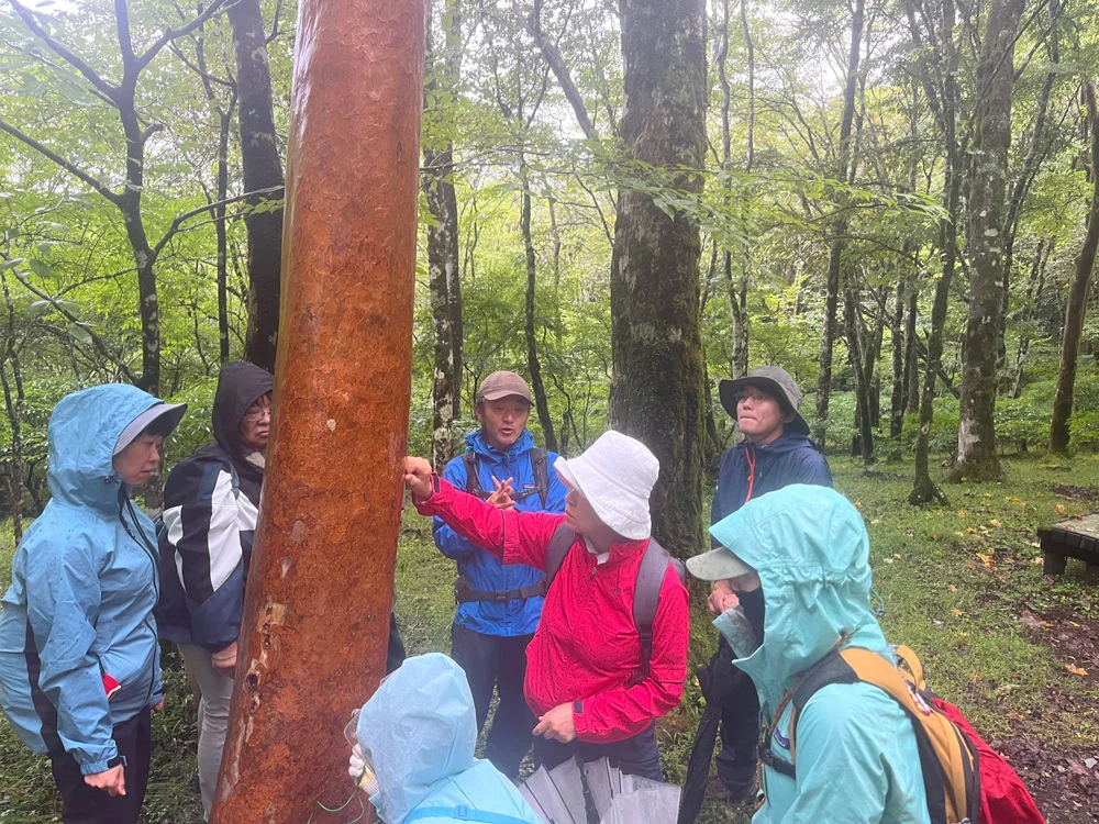 あいにくのお天気でしたが、雨だからこそ見ることのできるコケの美しさなど、富士山中腹ならではの自然を観察したり、富士山の水にまつわるお話などをお伝しました。