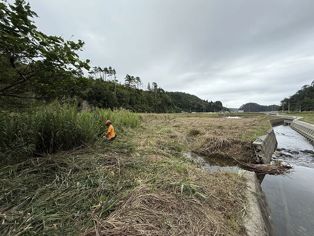 西舞根川下流の、東日本大震災で新生した塩性湿地の刈り払いを行いました。