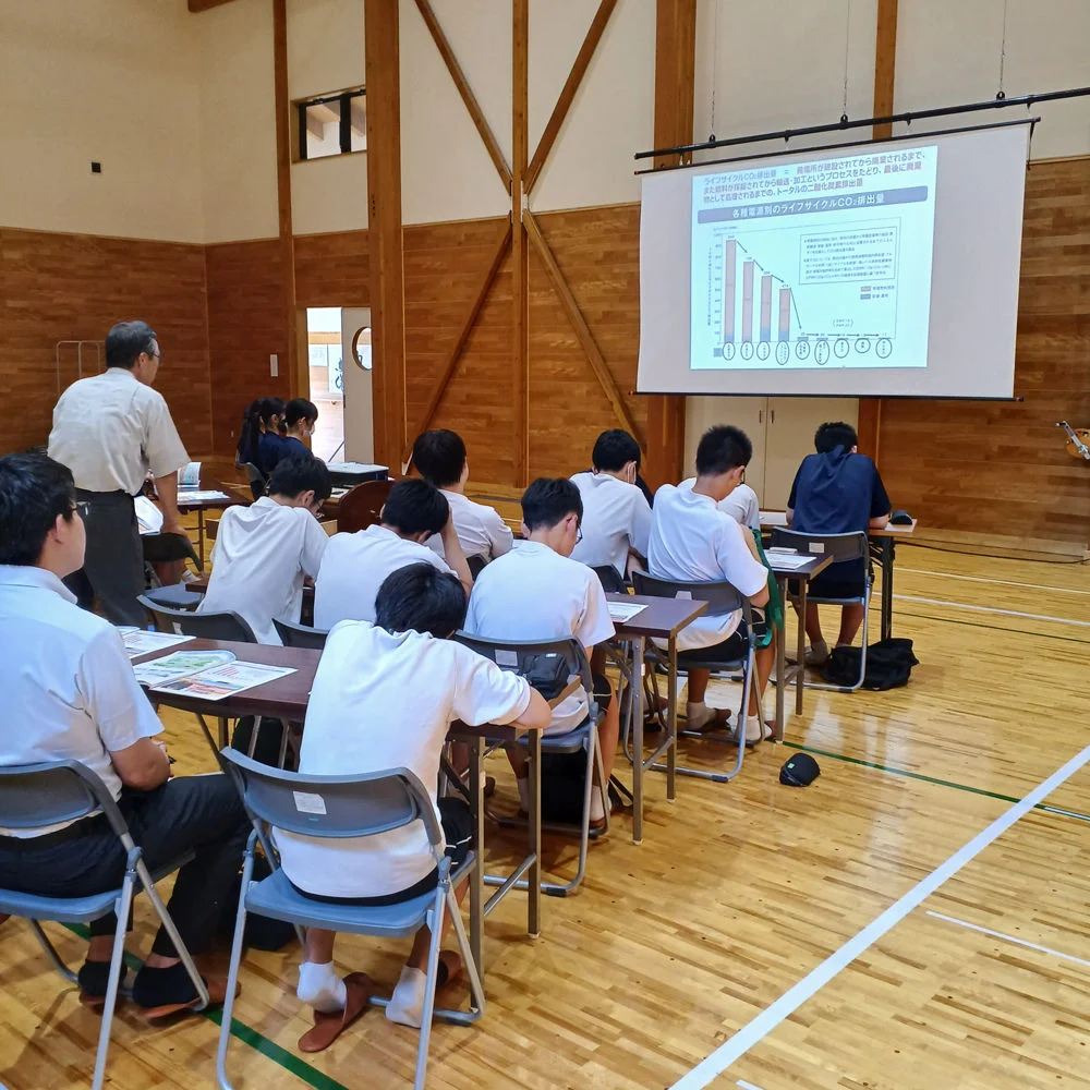 9月16日、大崎市立鳴子小中学校向け出前授業「カーボンニュートラルと再生可能エネルギー」を実施しました。