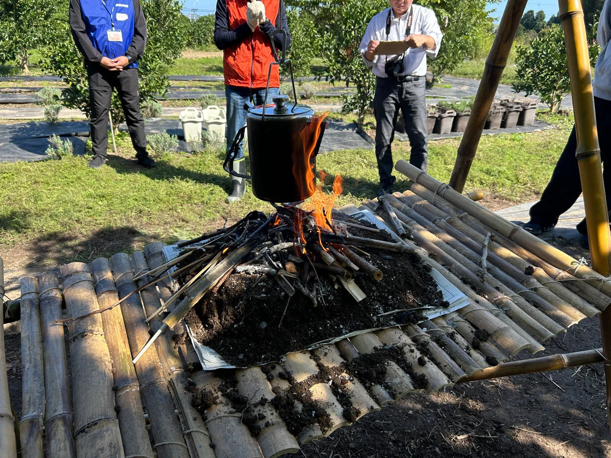 完成した竈で沸かしたお湯でいただくコーヒーは格別で、炎の温かさ、青空の下で竹の香りに包まれ、五感で自然と繋がる心地よい時間となりました。