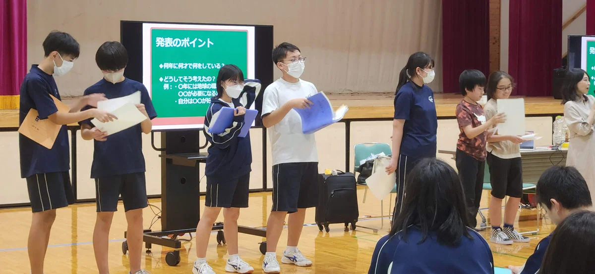 10月9日、大崎市立鳴子書中学校において、6年生から9年生100名を対象に、「気象キャスターと考える~地球温暖化と私たちの未来」をテーマに講演会を開催しました。