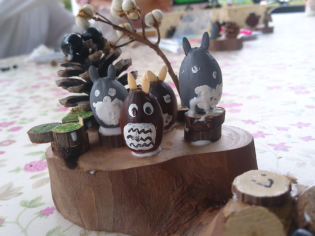 クヌギのどんぐりが落ち始めたので、何かできないかな?と考えていたところ、スタッフの提案でトトロづくりのイベントをすることになりました。
