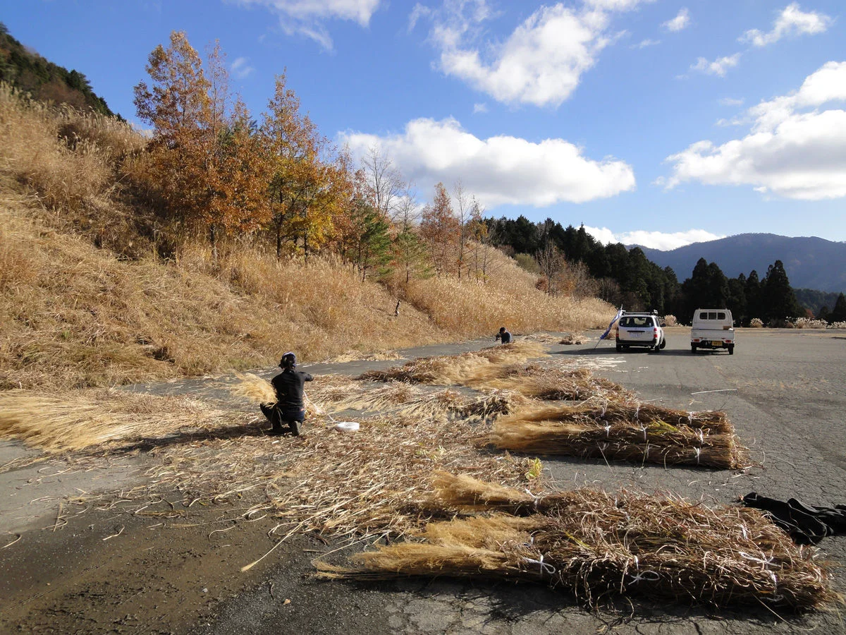 また11月29日から2日間で、茅葺屋根の材料となる茅の刈り取りを実施し、118束を刈り取りました。