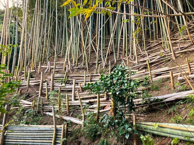 竹林の間伐で出た竹の有効利用のため、竹材を炭にして有機的な土壌改良材として、藤沢の農園に提供をしています。