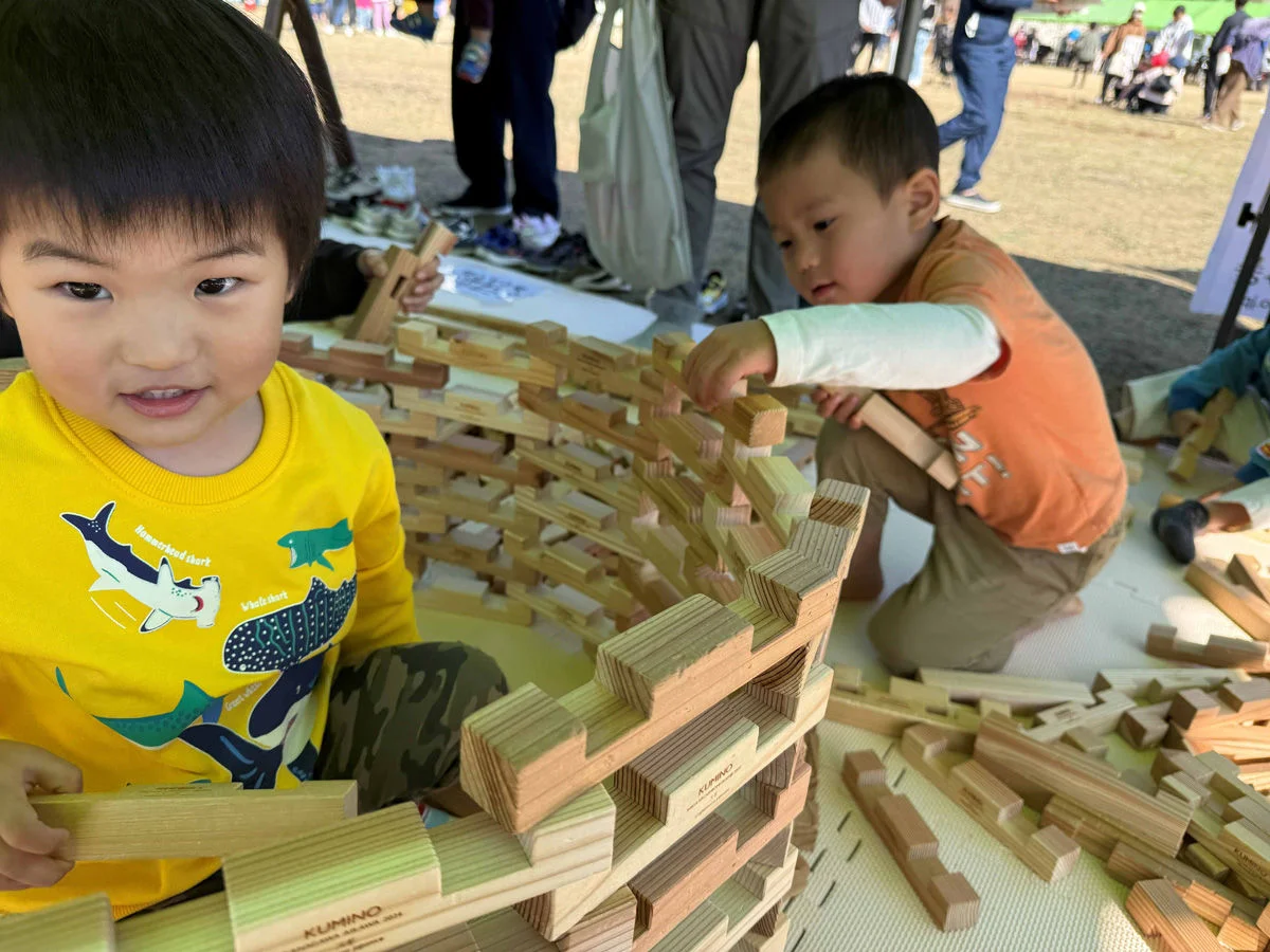 初めて屋外で開催したKUMINOひろばでしたが、お天気にも恵まれ、たくさんの子どもたちが楽しそうに遊んでくれました。