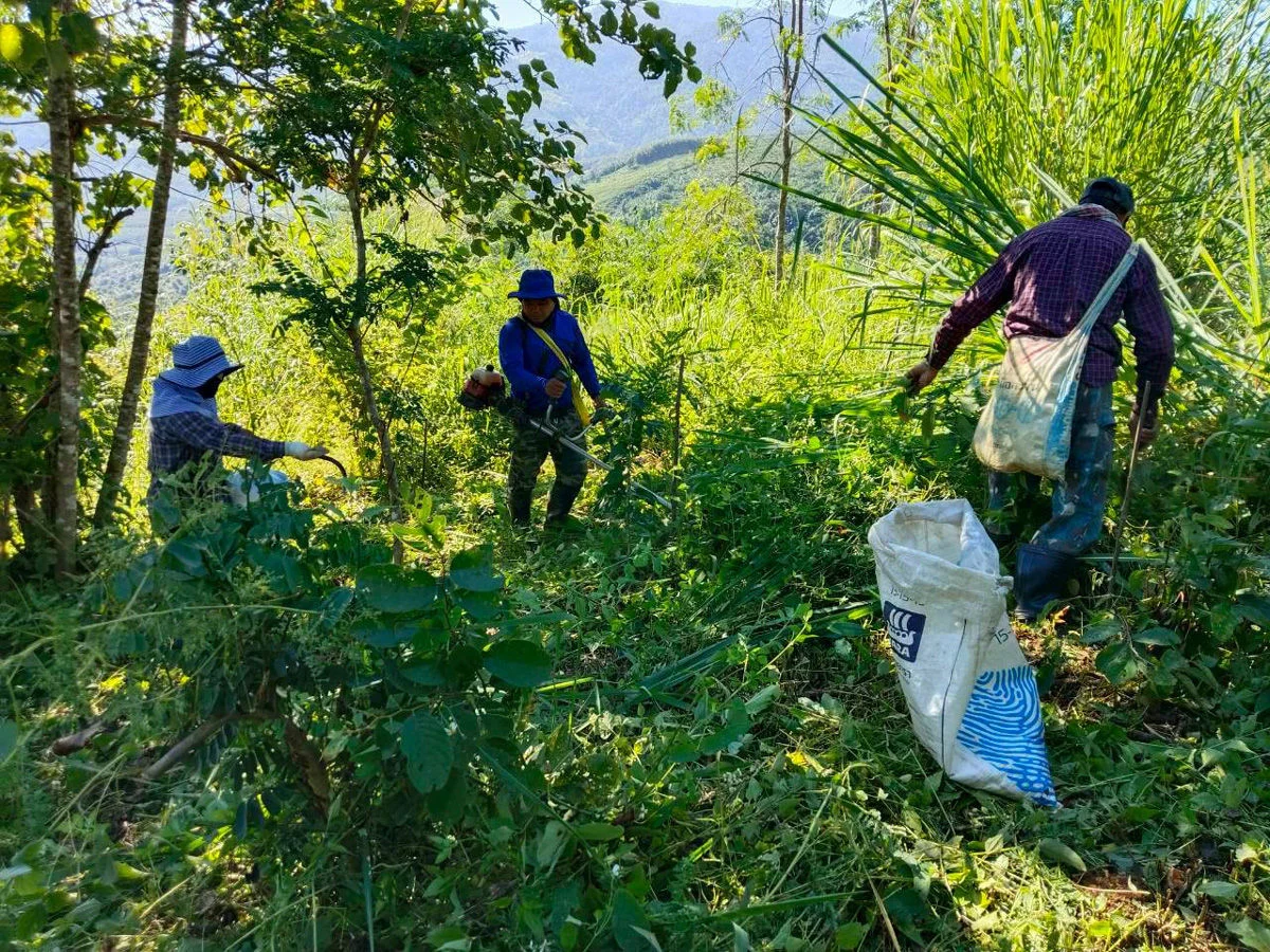 18日には、地域の60世帯の家族のメンバーが集まり、今年植林した植林地の管理作業が行われました。