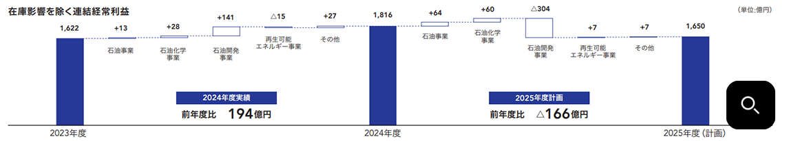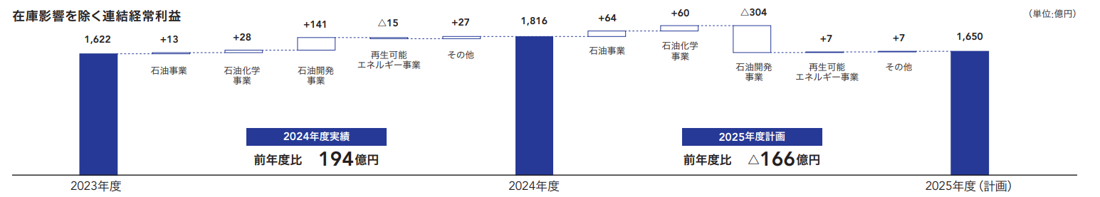 2025年度の在庫影響を除いた連結経常利益は1,650億円、在庫影響を除いた当期純利益は840億円と想定しております。
